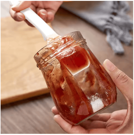 The tail of the spoon is specially designed to help you open cans and facilitate cooking. There is a ridge in the middle so it won't touch the countertop directly.