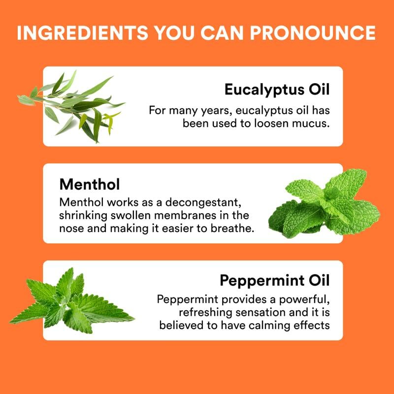 check_circle Quick Natural Relief: Formulated with therapeutic-grade peppermint and eucalyptus essential oils, it swiftly alleviates congestion and provides fresh breathing with 100% natural ingredients.