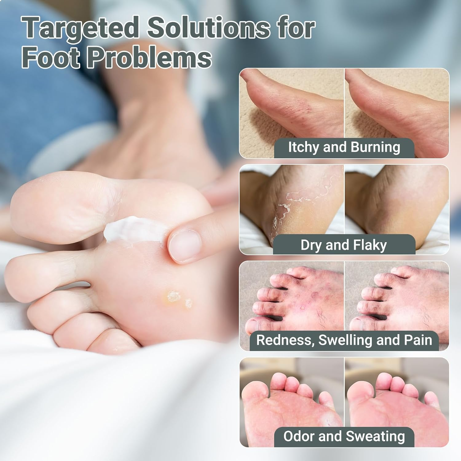 "After 12-hour shifts, my feet were cracked, itchy, and infected. Within 7 days of using this cream, the redness vanished, itching stopped, and my heels became baby-soft. Now I stride confidently!" - "My Feet Feel Reborn!" – Sarah T., Nurse